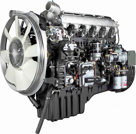 6-цилиндровый дизельный двигатель, 4-тактный, с рядным расположением цилиндров, жидкостной системой охлаждения, турбонаддувом и охлаждением наддувочного воздуха в теплообменнике типа “воздух-воздух”, установленном на транспортном средстве.